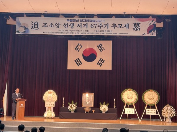 조소앙 선생 서거 67주기 추모제 페이지 정보 작성자 최고관리자 작성일25-09-10 11:15 조회69회 댓글0건 관련링크 이전글 다음글 목록 본문 조소앙 선생 서거 67주기 추모제- 일시 : 2025.09.10(수) 10:40- 장소 : 국립서울현충원 현충관 댓글목록 등록된 댓글이 없습니다. 이전글 다음글 목록