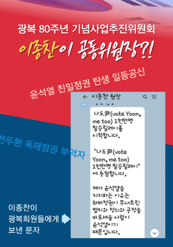 하나. 이종찬은 광복 80주년 기념사업추진위 공동위원장을 사퇴하라!