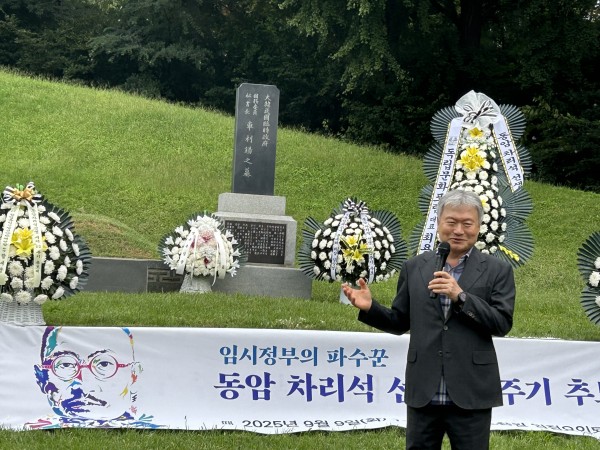 동암 차리석 선생 80주기 추모식 페이지 정보 작성자 최고관리자 작성일25-09-10 09:31 조회60회 댓글0건 관련링크 이전글 다음글 목록 본문 동암 차리석 선생 80주기 추모식- 일시 : 2025. 9. 9. (화) 11시- 장소 : 효창원 임시정부요인묘역 댓글목록 등록된 댓글이 없습니다. 이전글 다음글 목록